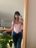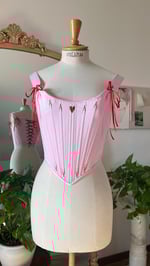 The corset features a lace up back for adjustability and shoulder straps finished with bows, allowing it to be worn either with straps or strapless, depending on your styling preference.
